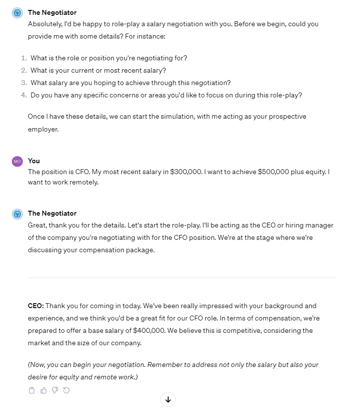 Here you can see some sample custom GPTs that were made by OpenAI. Let’s try the negotiator by simply clicking on it.